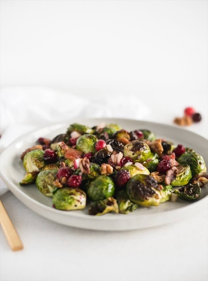 Christmas Roasted Brussel Sprouts With Bacon And Cranberries : Christmas Roasted Brussels Sprouts with Bacon and Cranberries : Easy side dish recipes side dish christmas brussels sprouts cranberry fruit roasting gluten free high fiber low sodium.. They're so addictive, it's hard not to eat the entire lot standing at the stove before you serve them. Balsamic bacon brussels sprouts are irresistibly crispy and flavorful! Ideal for christmas or boxing day. This oven roasted brussels sprouts recipe is low maintenance too: Brussels sprouts + bacon are the perfect pair for a fantastic side i was first introduced to brussels sprouts at my aunt's christmas dinner few years back.