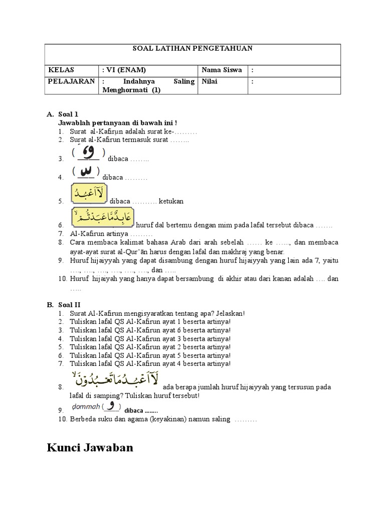 Surat ini berisi tentang toleransi dalam keimanan dan peribadahan. Surah ini bisa kita temui di juz amma di karenakan memang nah, berikut ini lafadz dan teks bacaan surat al kafirun di versi tulisan arab dan latin lengkap beserta arti/terjemahan bahasa indonesianya supaya. Jadi pokok isi surat al kafirun ini adalah tidak dibolehkannya kompromi dalam bentuk mencampuradukkan ajaran agama. Wallohu a'lamu bishawab itulah artikel tentang gambar surat al kafirun lengkap dengan artinya untuk anda, semoga bermanfaat. Artikel ini sebelumnya telah tayang di pikiran rakyat dengan judul: