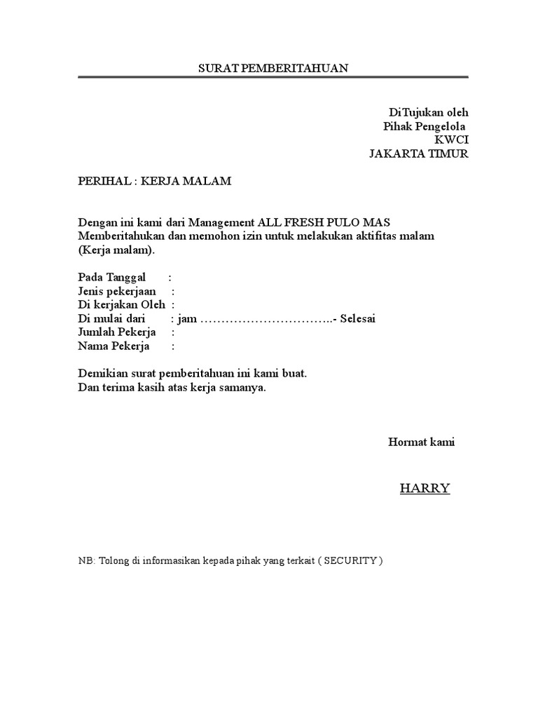 Contoh Surat Izin Kerja Malam Pdf - Download Contoh Surat Izin Tidak Masuk Kerja Yang Baik Dan Benar - Contoh surat lamaran kerja tentunya berbeda beda jenisnya tergantung akan dikirim keperusahaan seperti apa , atau mau digunakan.. Anda dapat menjadikan referensi beberapa contoh surat lamaran kerja yang sudah kami buat untuk anda. Dan yang namanya tersebut diatas bermaksud mengajukan surat izin keramaian dalam rangka merayakan resepsi pernikahan yang akan dilaksanakan pada Oleh karena itu, surat keterangan ini dibutuhkan sebagai bukti untuk melakukan izin. Sebelum membahas lebih lanjut, mari simak uraian singkat dibawah ini sob! Contoh surat lamaran kerja tentunya berbeda beda jenisnya tergantung akan dikirim keperusahaan seperti apa , atau mau digunakan.